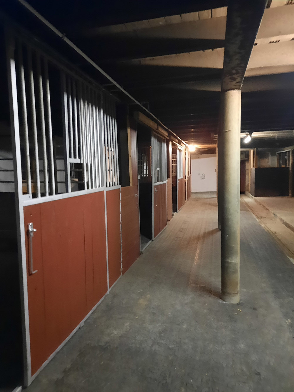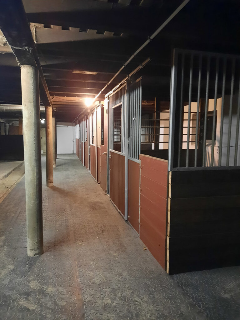 Der gesamte Stallbereich ist mit gelenkschonenden Stallmatten ausgestattet, um den Pferden einen sicheren und komfortablen Aufenthalt zu gewährleisten.