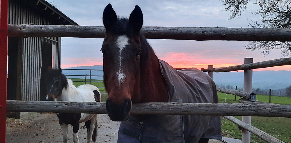 Heu steht rund um die Uhr zur Verfügung. Auch die Fütterung von Heucobs ist problemlos möglich. Die Vollpension beinhaltet tägliche Fütterung und einmaliges Misten.